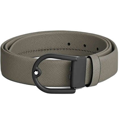 Кожаный ремень 35 мм из кожи серого цвета, пряжка в форме подковы от магазина премиальных ручек Premium Pens в Южно-Сахалинске.