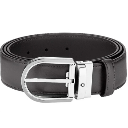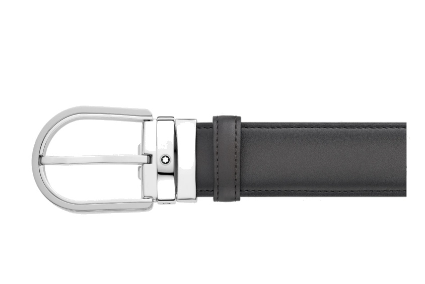 Кожаный ремень с пряжкой в форме подковы серого цвета 35 мм от магазина премиальных ручек Premium Pens в Южно-Сахалинске.